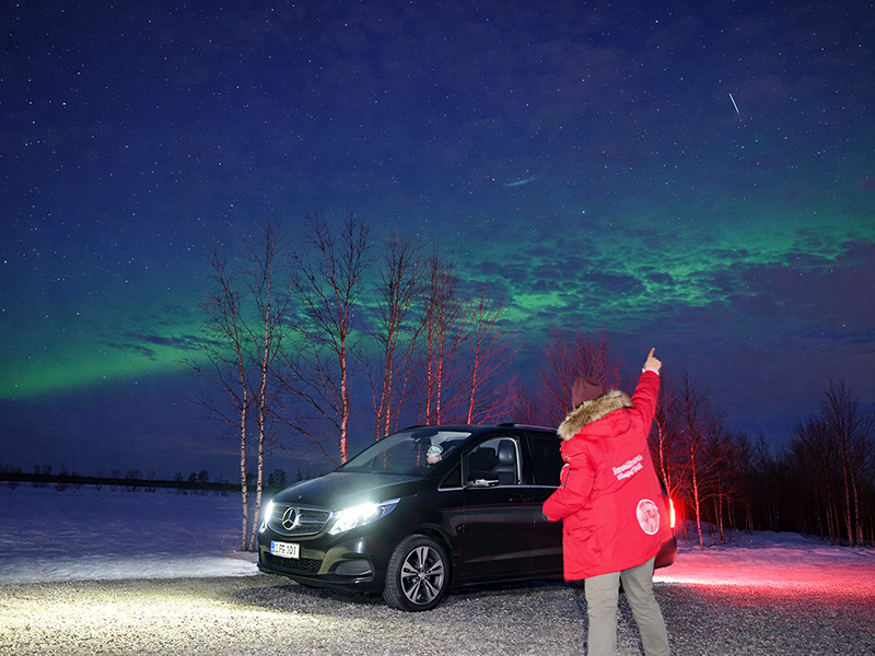 - Up to 200 km from Levi in any direction — the driver follows the sky, not a fixed route