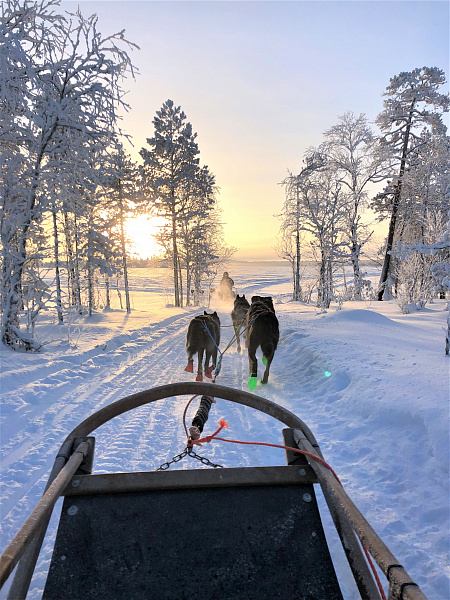 Enjoy an approximately 2 hour snowmobile ride and the winter landscapes. At some scenic spots we make a stop for some photos. After snowmobiling, we will take you to a local husky kennel, where the dogs are waiting to take you on a 5km self-driven ride.