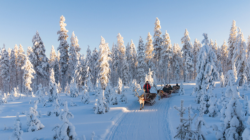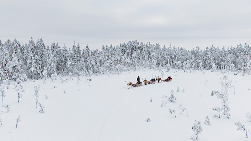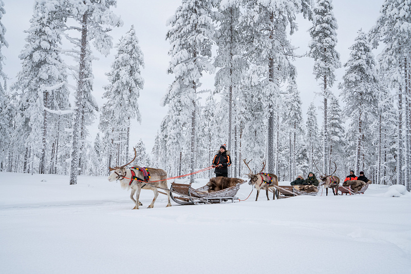 ✅ ~35min Reindeer Sleigh Ride through snowy forests.