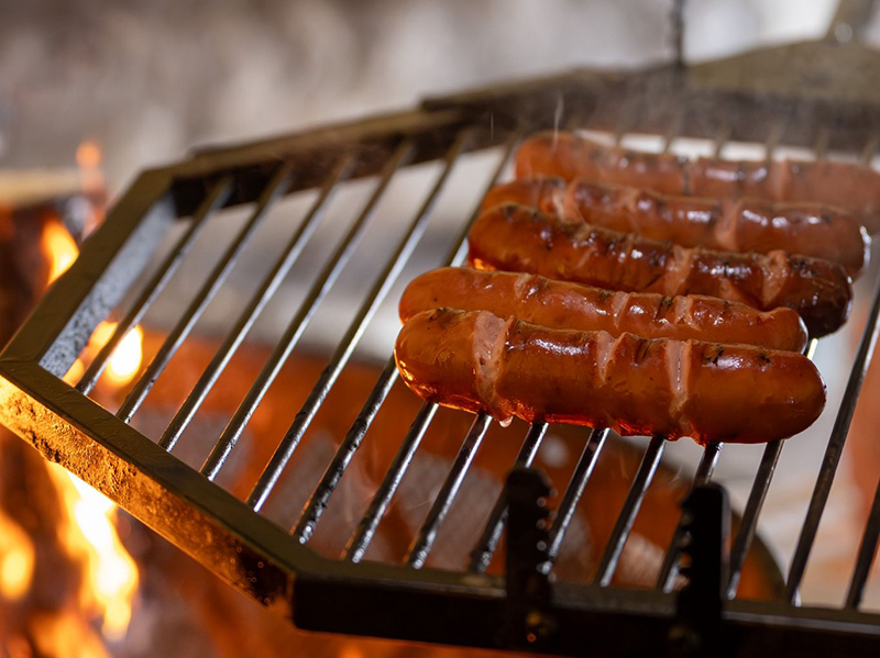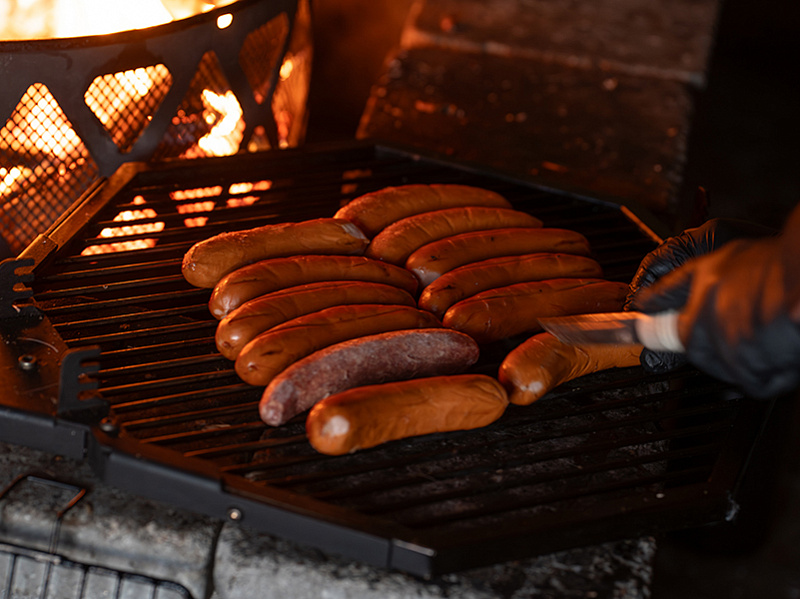 - Campfire lunch: grilled sausage, Finnish pancakes with arctic berry jam, hot drink