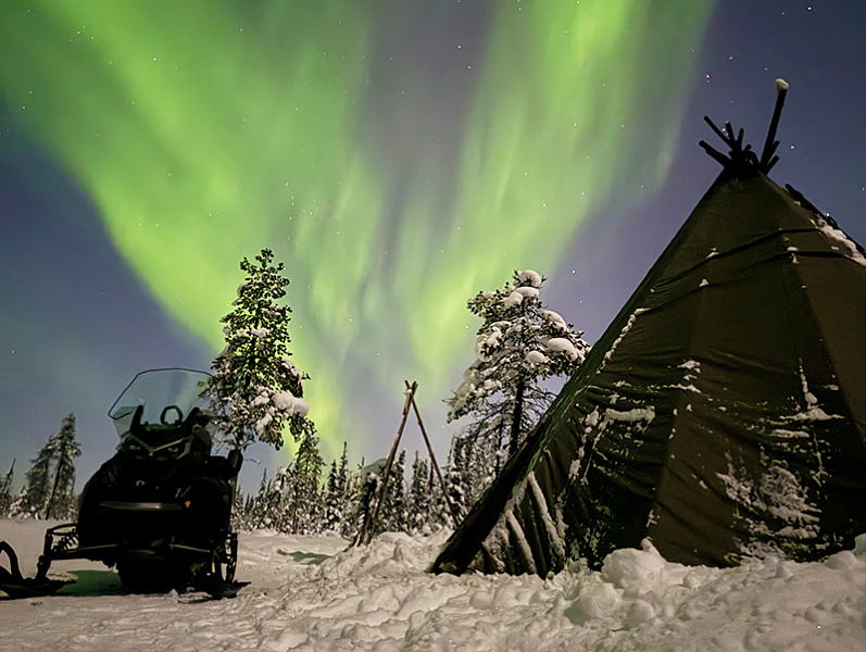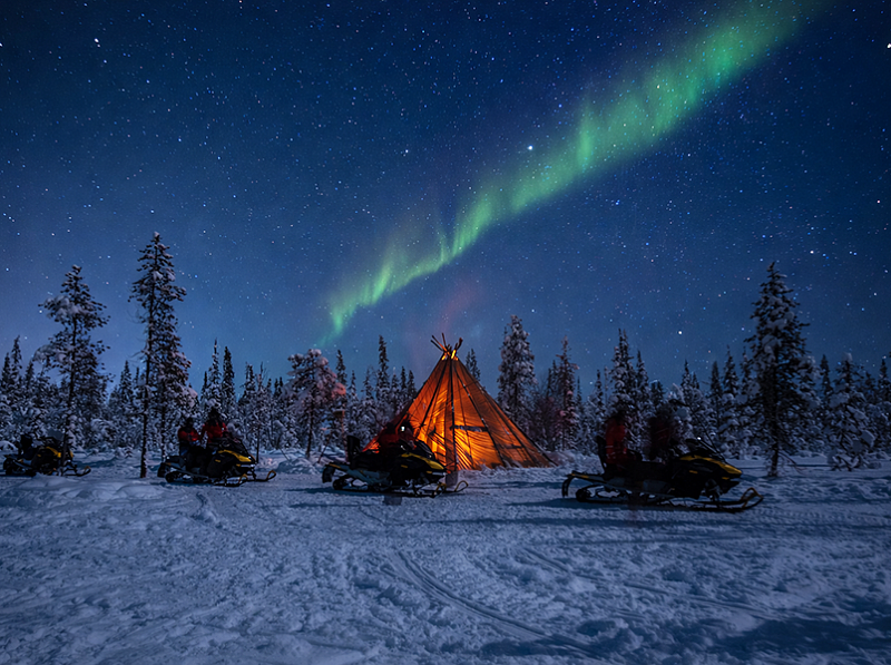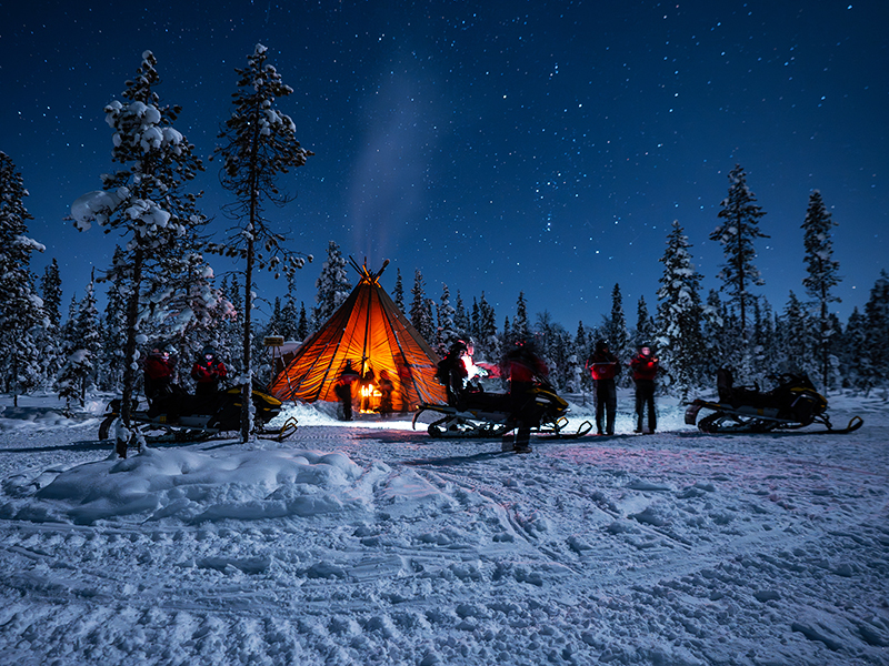 This Arctic night snowmobile safari with campfire in Levi includes: