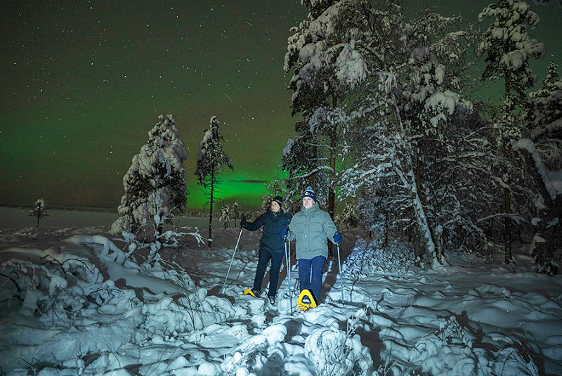 Snowshoeing — Night Aurora Search, Levi