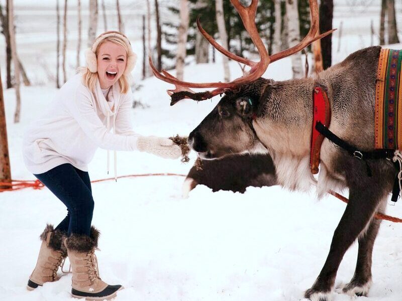 Reindeer are semi-domesticated animals and even though they are used to living next to people, they are quite shy and can be unpredictable. Please always follow the instructions given by the guide and try to be calm and careful when close to the reindeers.