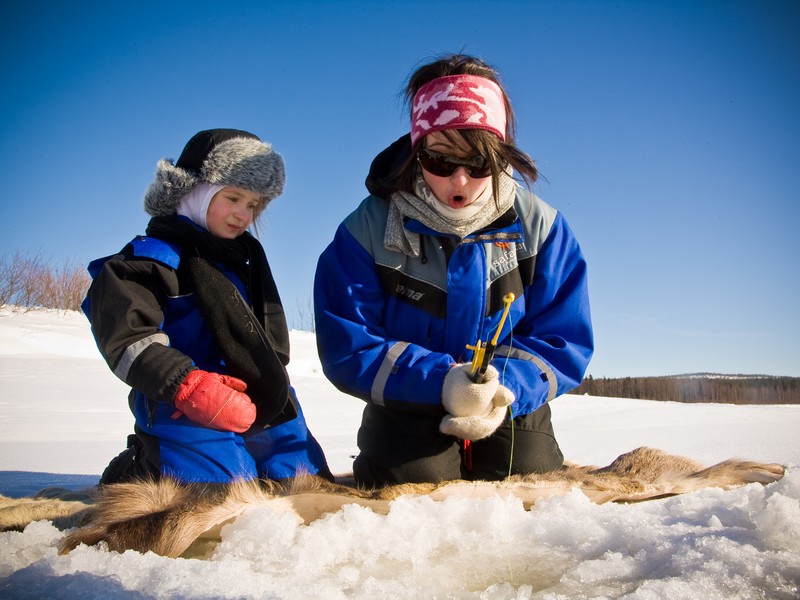 Welcome to join us to this best combination to enjoy the Lappish nature during the winter. The length of the unforgettable reindeer safari in the Arctic nature is 2,5 km. When it comes to ice fishing it is one of our greatest hobbies: we will like take you rod ice fishing with us.