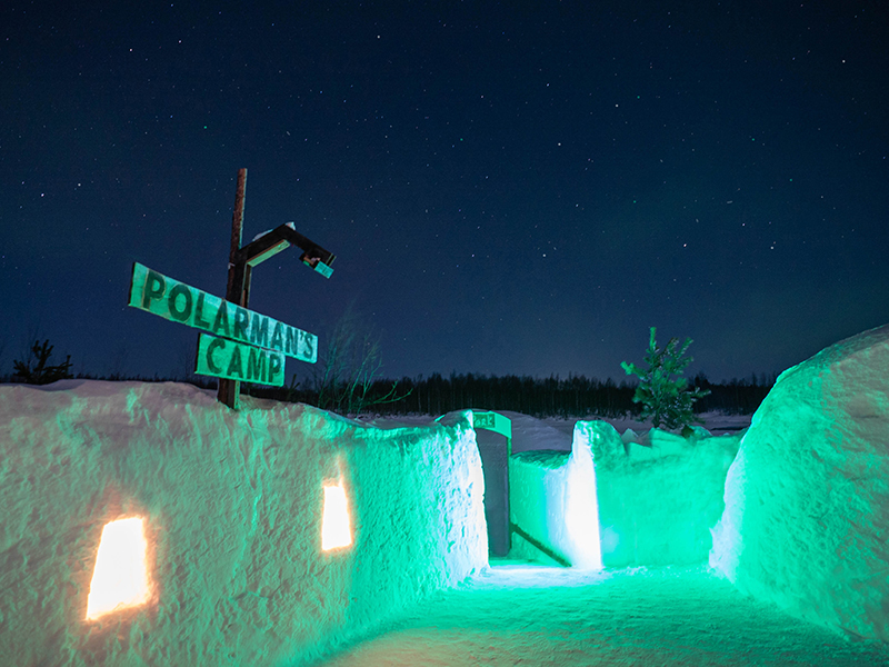 - Entrance ticket to Polarman’s camp and Snow Igloo Park Live. Ticket includes using all available attractions and amenities at our private camp area during an approximate time of 2,5 hours on the spot: