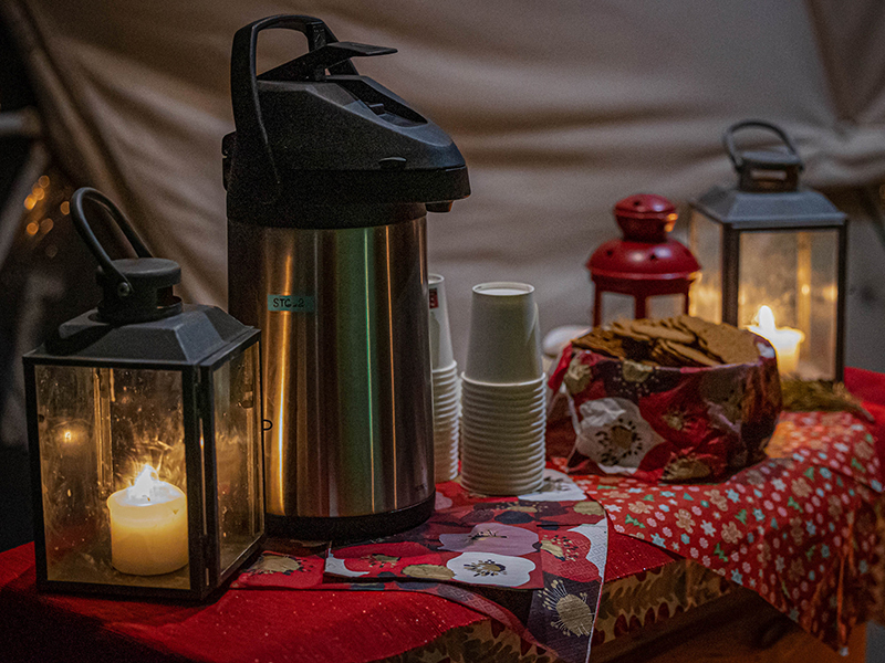 If you feel cold at any time during the program, you can always find shelter and warm up inside the Aurora dome, have some more hot drinks and more cookies.