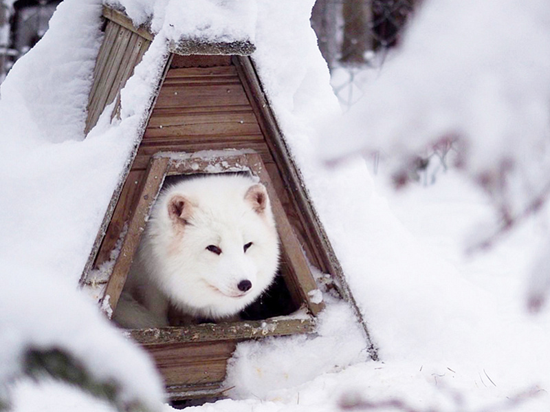 Please remove your gloves or mittens when touching the huskies and other animals. They love to play with gloves and may easily damage or steal them – especially the fox, who is known for hiding them!