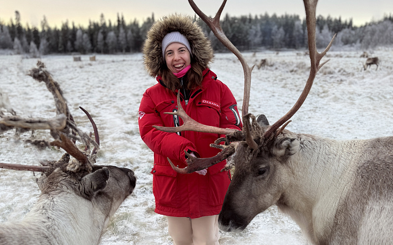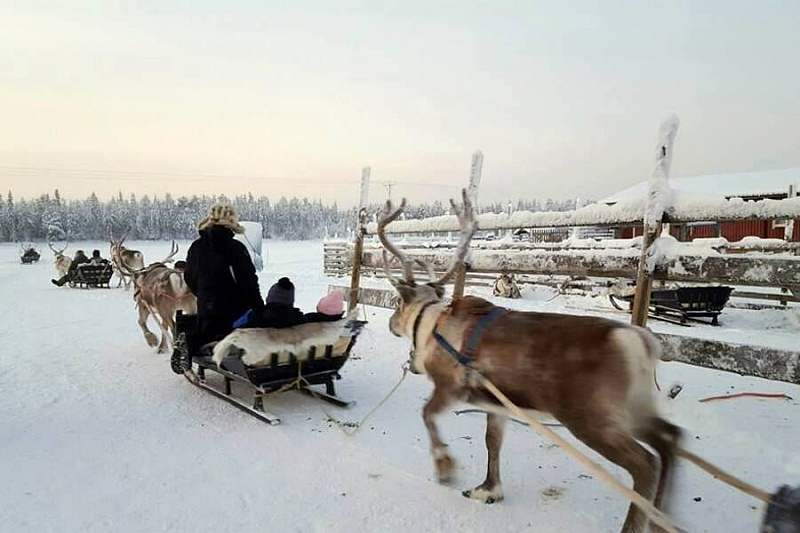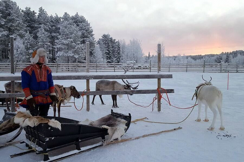 Experience the magic of Arctic nature with a visit to one of the most picturesque reindeer farms in Lapland, nestled along the banks of the Ounasjoki River, where the rapids remain unfrozen even in the depths of winter. The old barn on the property, once a stopover for northern travelers, adds a layer of local history to the setting.