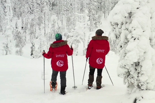 Your experience begins in Levi village centre, where your local guide will greet you and help you gear up with snowshoes and necessary equipment. After a quick fitting (snowshoes adjusted to your foot size and worn over your own winter boots), the group will walk approximately 500 meters to the starting point near the base of Levi Fell.