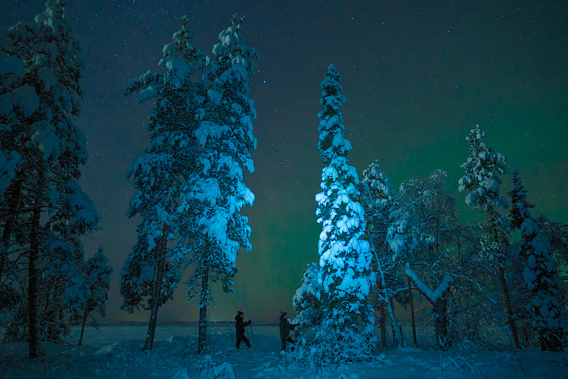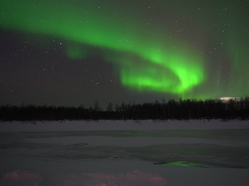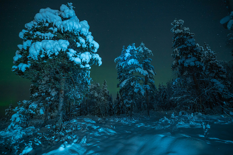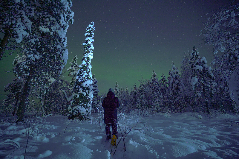 Even in cloudy or snowy weather, the experience remains atmospheric. The snow-muted silence, crisp night air, and glow of your headlamp combine into a peaceful and immersive Arctic experience.