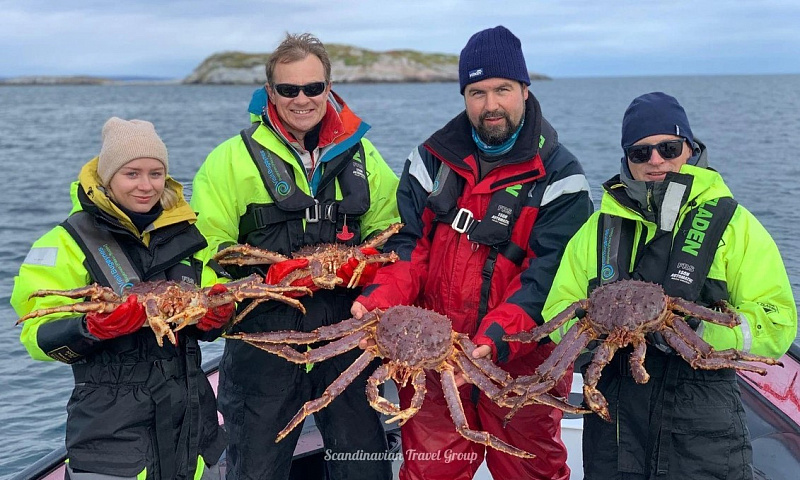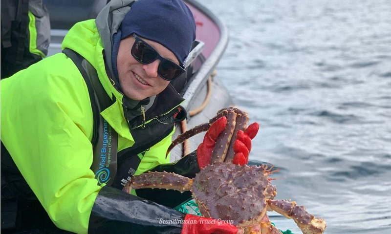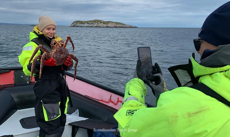 We will wake you up with a freshly brewed Finnish coffee and tasty breakfast pack in a bus. As we’re driving to the North, you’ll see a landscape changing from taiga to tundra and after the Norwegian border crossing – fjords and mountains. After we arrive to the Arctic Ocean, we will stop at the peer of the most Northern never-freezing fjord. After a briefing about safety rules at sea we will put on the warm floating suits, board on a RIB boat and go out on a cruise in the fjord. When we reach the fishing grounds your captain will lift a big crab pod from the sea bottom full of crabs and release them on the deck. You can take photos with crabs. Captain will explain the difference between male and female, and if you’re lucky you can taste crab caviar. If the weather allows you can also try deep-sea angling from the boat at the same time. If we are lucky, we might also see some whales, seals and porpoises. When we return on the shore, you will be invited to a local village restaurant for a a delicious meal of freshly boiled king crab with speciality sauce. After the lunch you will return to Levi by bus.