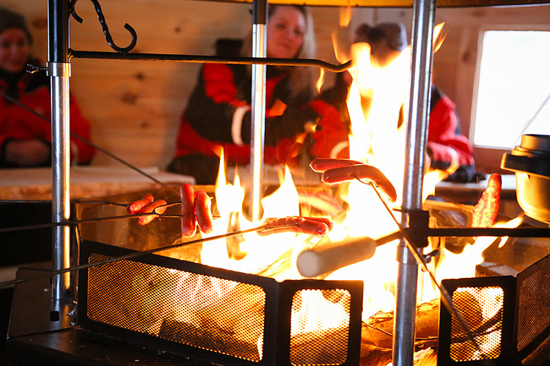 - Frying reindeer sausage over the open fire (vegetarian/other options available upon request)