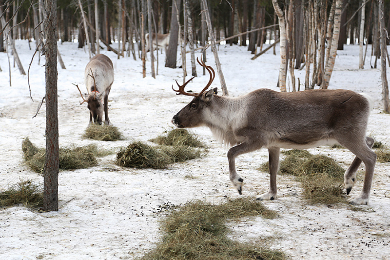 Reindeer always live free most of the year in nature and are only collected into the farm for the wintertime for proper feeding and care. Animals’ well-being is the top priority of the farmers. This is a non-riding farm — reindeer roam freely in large, fenced areas. Our groups are quite small (up to 15 people) and visits are scheduled only 2 times a day.
