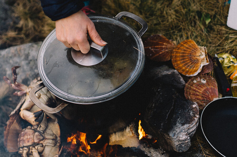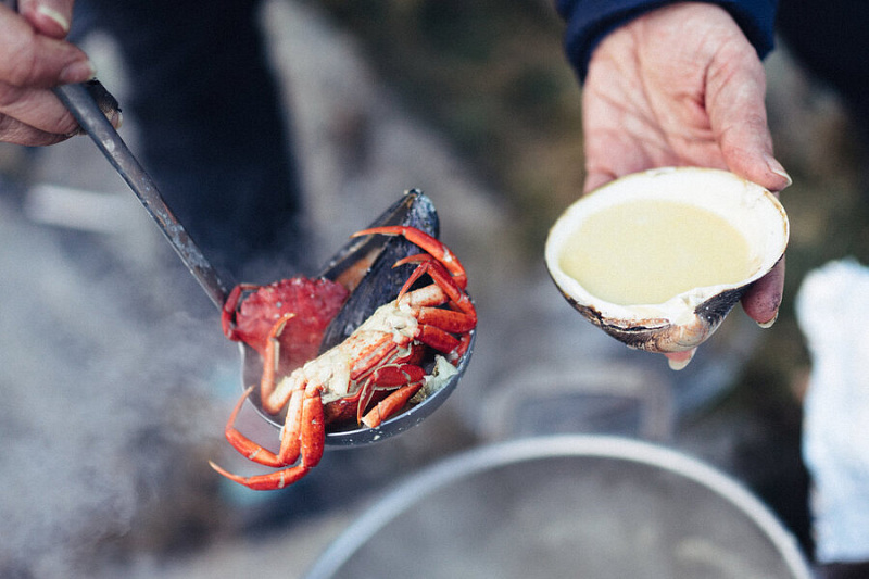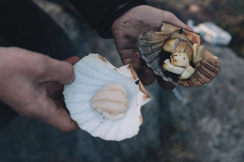 During the cruise you will experience a scenic fjord safari which will take you between islets and reefs. Our final destination will be one of our carefully chosen coves or islets in breathtaking surroundings. Here we will make a bonfire where we will prepare a gastronomic meal. We will bring with us fresh produce and delicacies of the finest quality, such as scallops, clams and crabs. The dishes and produce will vary, but we always serve grilled scallops and our signature shellfish soup. As part of the experience of “fjord cuisines” we will search for periwinkles, shells and seaweed by the shore which we will use as ingredients in the various dishes.