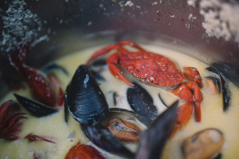 We will prepare various dishes, such as seaweed crisps, an Asian inspired crab dish and a ceviche of scallops. One of our signature dishes is the popular seashell soup. We will adapt the menu based on the participants and the produce available.