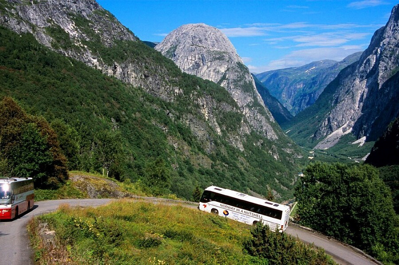 10:10 Scenic bus waits for you for a travel from Voss through breath-taking landscapes towards the Viking village of Gudvangen. During summertime the bus also goes all the way down the famous steep hairpin bends of Stalheimskleiva.