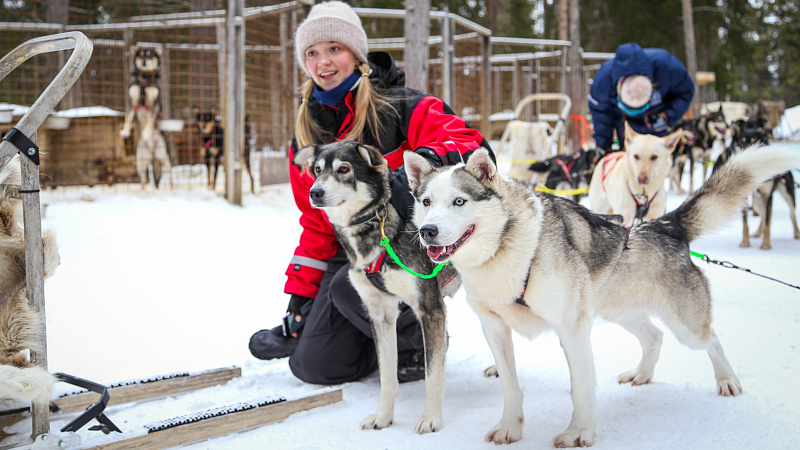 Kennel owners are energetic professional sport dog mushers. They have well-trained Arctic-Alaskan huskies. This breed was created by crossbreeding in the beginning of 20th century in Alaska especially for dog racing during the Gold rush period. There are over 42 dogs in the kennel, including Siberian and Arctic-Alaskan huskies and 3 reindeer dogs.