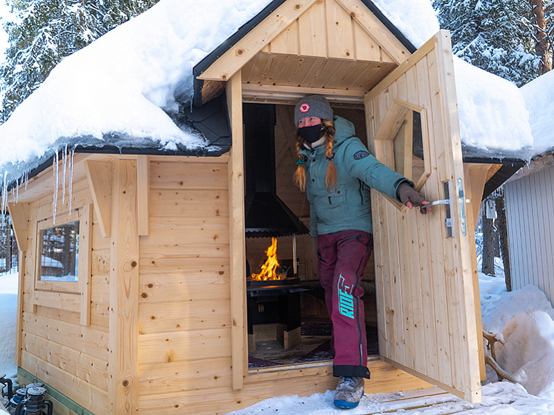 - Warm hut (kota) with open fire