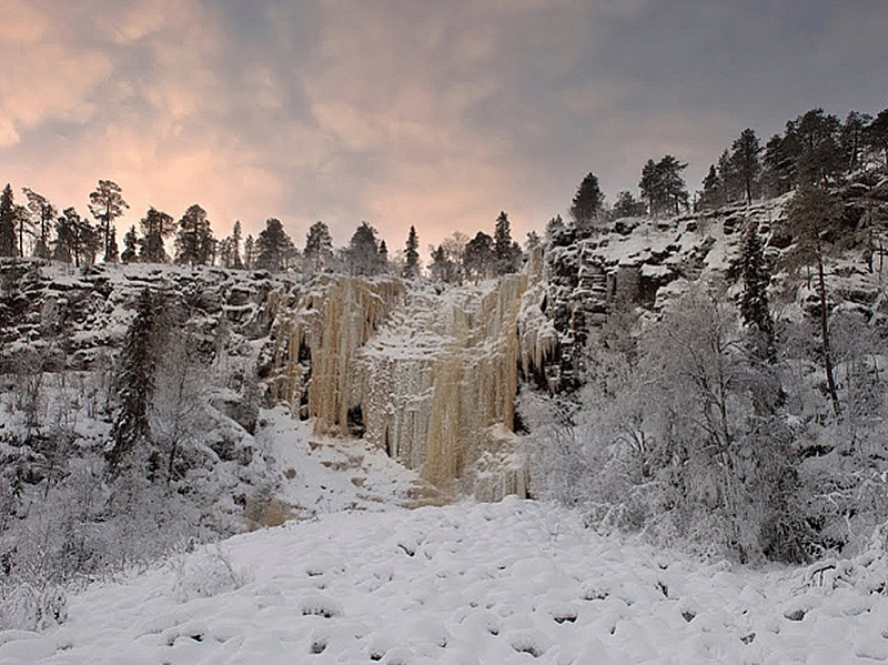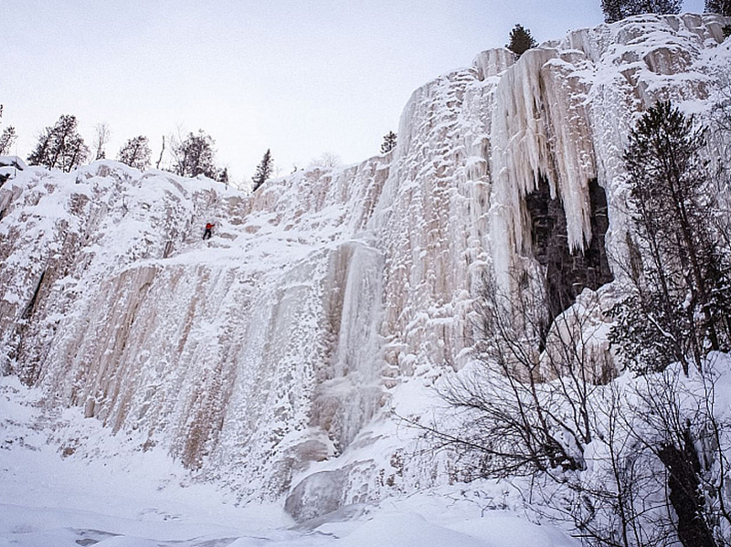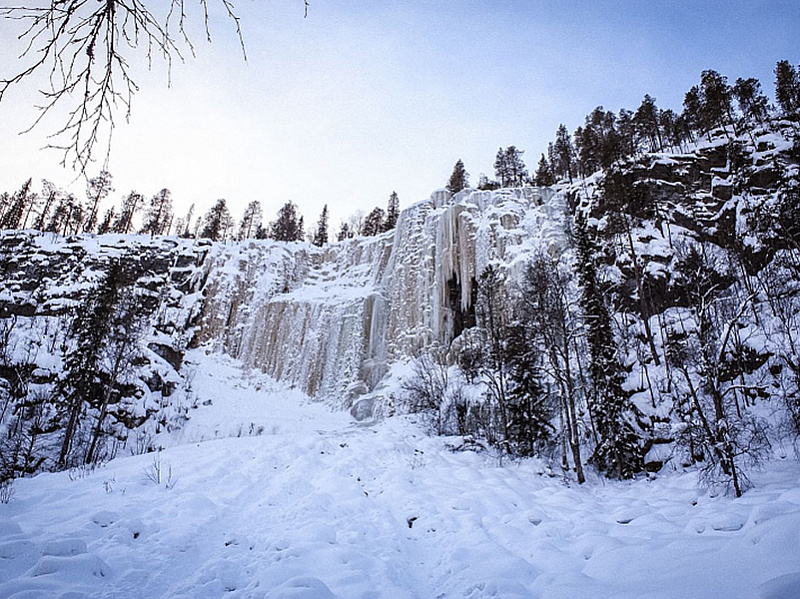Korouoma is a 30 kilometer long geological fracture valley in Posio. It is a part of a fracture zone in the bedrock, which is hundreds of millions of years old. At the center of Korouoma the fracture valley forms a gorge with high cliff faces. Small streams which cascade down the cliff faces in the summer, freeze into beautiful frozen waterfalls during winter, making Korouoma the number one ice climbing destination in Finland.