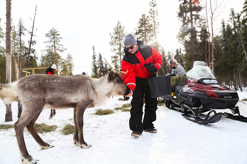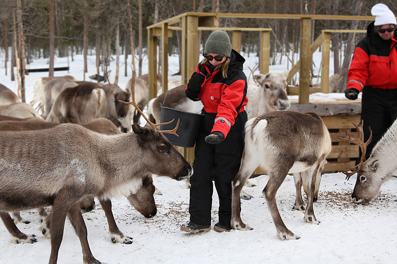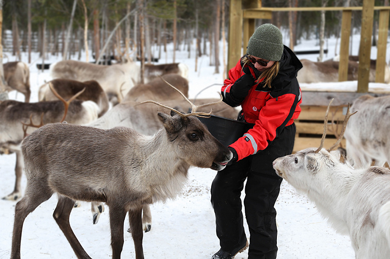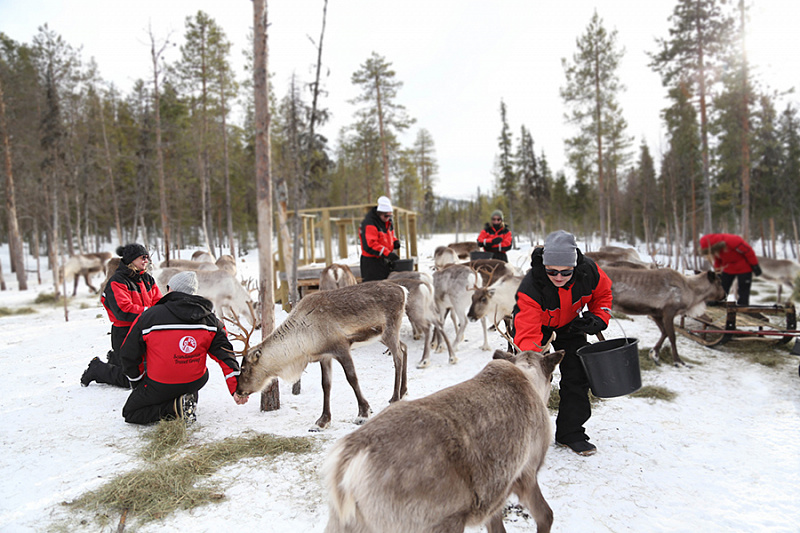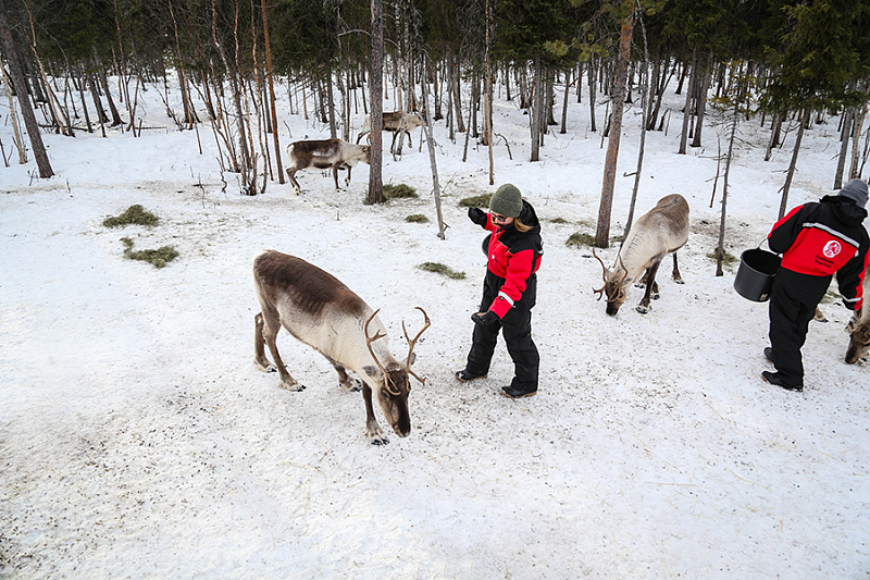 - Feeding the herds of reindeer at several different feeding areas