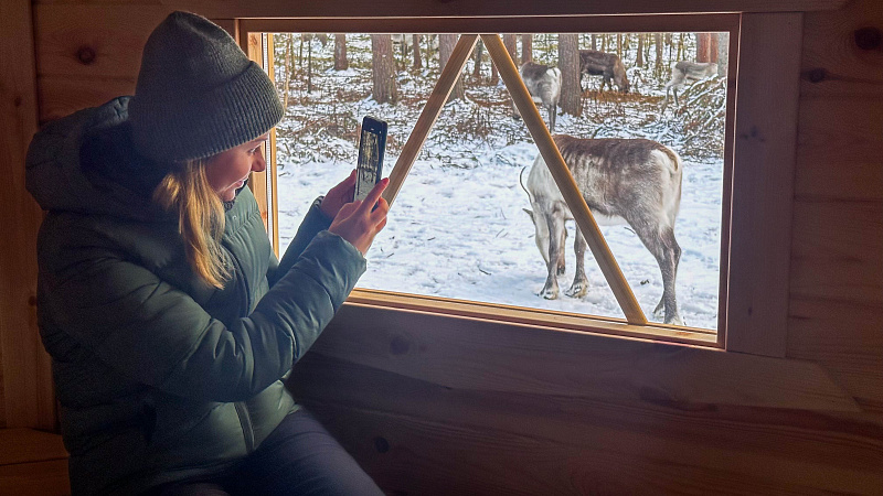 Reindeer will roam freely around the group during the activity. Parents must maintain constant supervision of their children to ensure everyone's safety. The reindeer on the farm are semi-wild animals that are not tamed to interact with humans. As such, they may become startled by sudden movements, loud noises, or a person standing too close. When frightened, the reindeer may run in a certain direction and accidentally hit a person in their path, including with their antlers or hooves. Our company and the reindeer farm are not liable for any accidents involving reindeer that may occur during the program.