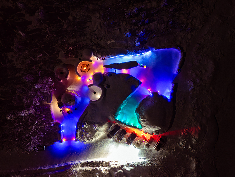 - Snow Igloo Park (Dec 10 – Mar 31) — hand-built illuminated snow park: grand snow igloo, Inuit igloo, carved archways and tunnels, snow slide, snow maze, snow sculptures and the Arctic BBQ Snow Station, all lit in colour after dark