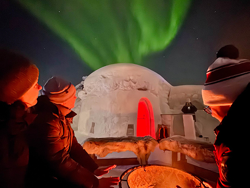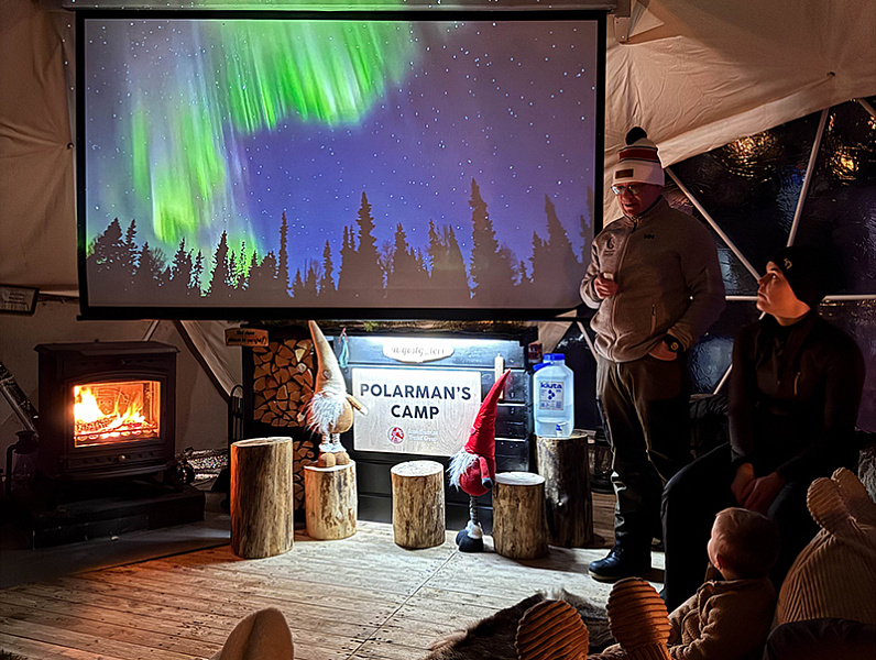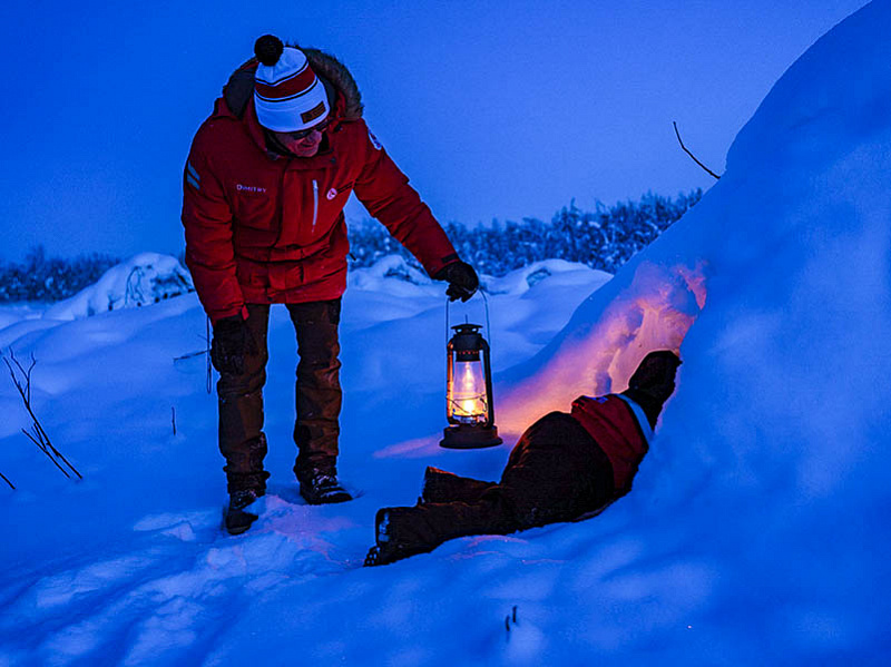 - Arctic survival presentation by the Polarman inside the snow igloo — covering survival knowledge drawn from his years of living and travelling in the north