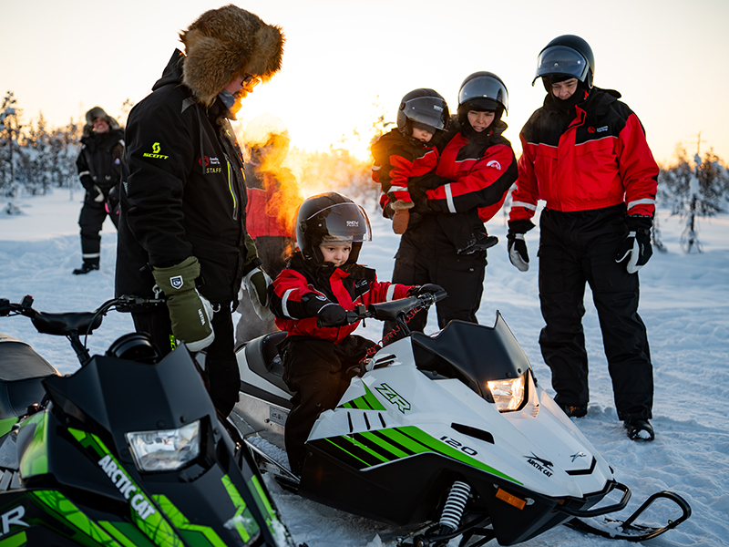 - Mini-snowmobile riding for children on a private track deep in the wilderness — the most secluded mini-snowmobile experience available in Levi